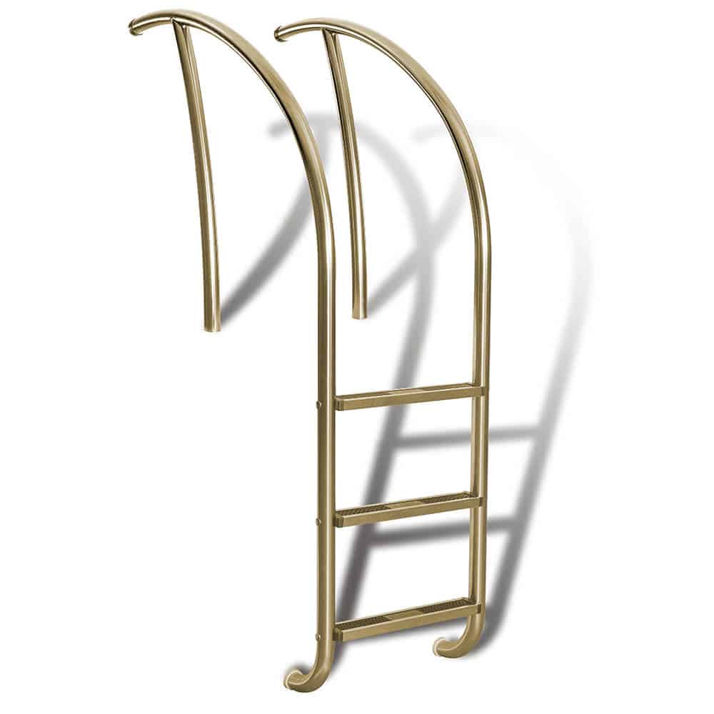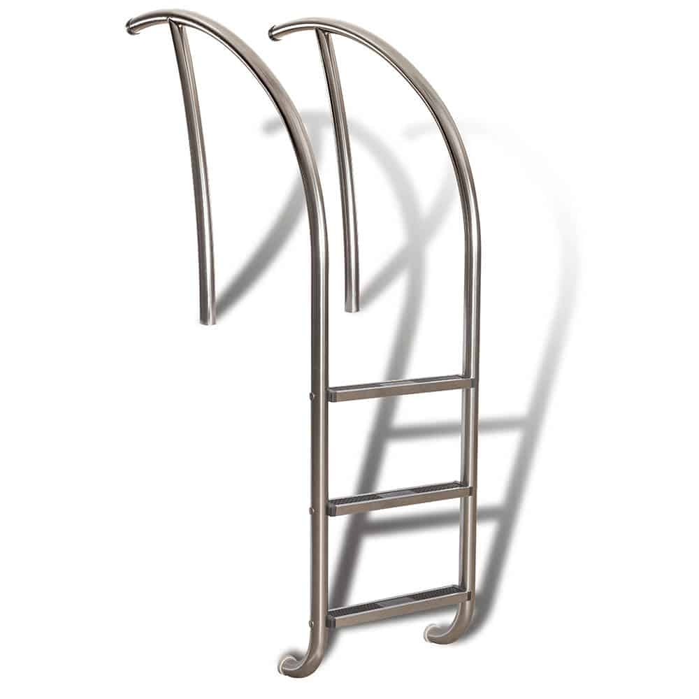 The Artisan Series Ladder is a patented, designer inspired ladder that provides an elegant custom look for any pool environment. This is the ideal choice for pool renovation projects, as the Artisan Series Hand Rail easily replaces a standard 24″ 3-step ladder. The rails are made with Stainless Steel with 1.90″ OD and a wall thickness of .065. The Steel is usually 304 grade but there is also a 316L Marine grade option available. For color options you have a Polished Stainless Steel look, a Powder Coated look in White, Taupe, and Rock Gray. For your anchors S.R. Smith recommends to use the Universal Plastic Deck Anchor 2 Pack.