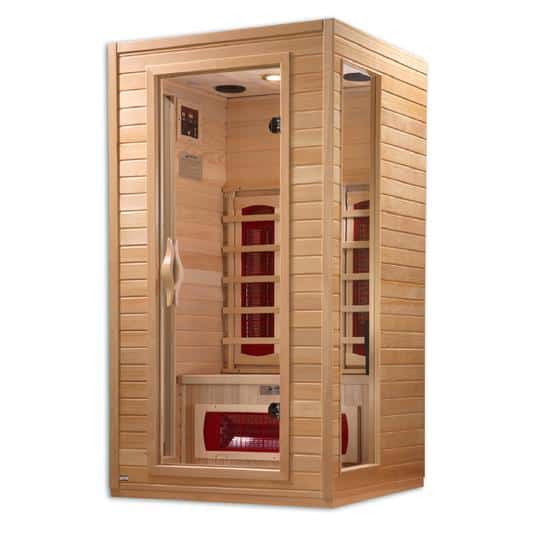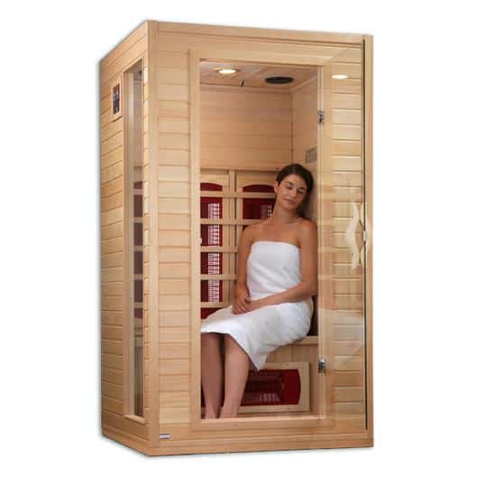 The Cindy 1-2 Person Ceramic FAR Infrared Sauna has four efficient heaters that can create the ideal environment. It has a removable seating bench that is ideal for one person to use. It has two full-length side windows and a tempered glass door. It has adjustable temperature with a range of 90 to 140 degrees. This sauna is made from premium quality hemlock and it is burnished with a honey finish. This energy saving sauna has an adjustable roof vent for proper air circulation. The non-toxic sauna is portable and it has a state-of-the-art timer.