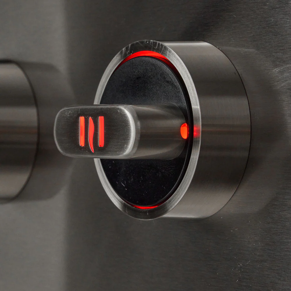 This Coyote grill also sports stylish, orange LED illuminated control knobs! Use the removable warming rack to keep food heated until serving time and easily monitor the temperature inside your grill using the integrated thermometer.