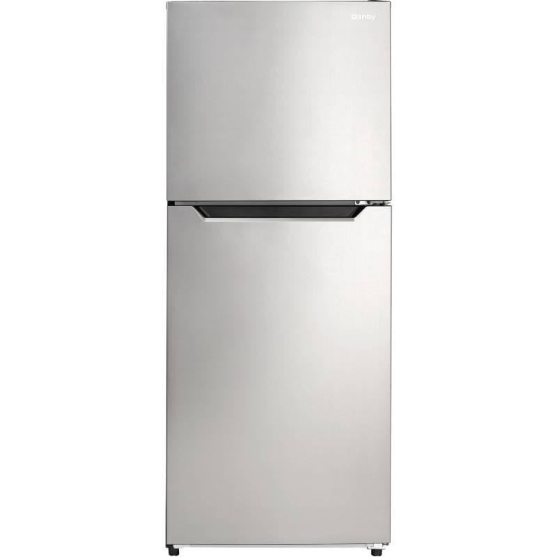 Danby DFF101B1BSLDB 10.1 Cu. Ft. Black and Stainless Steel Refrigerator with Top Mount Freezer Features: