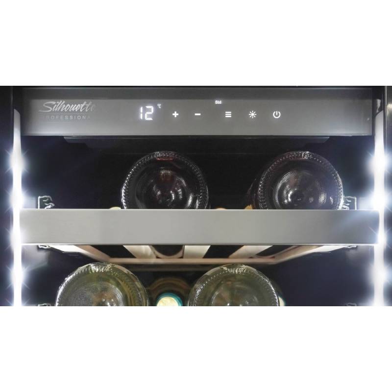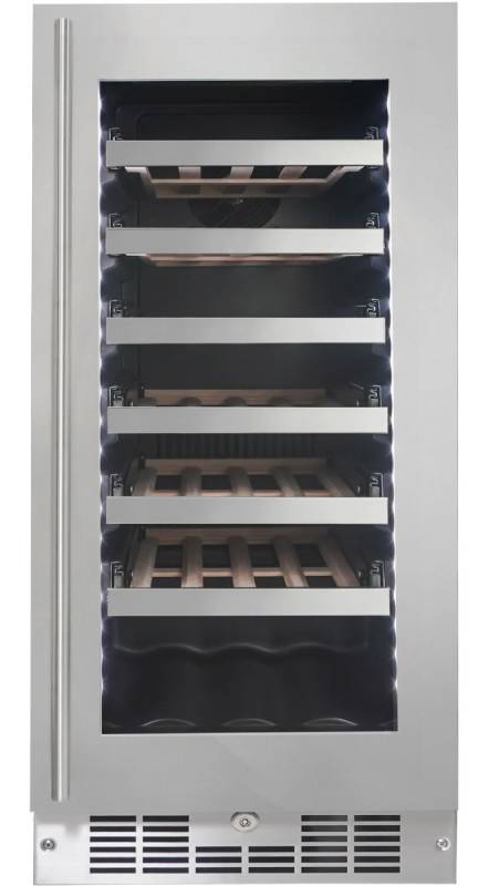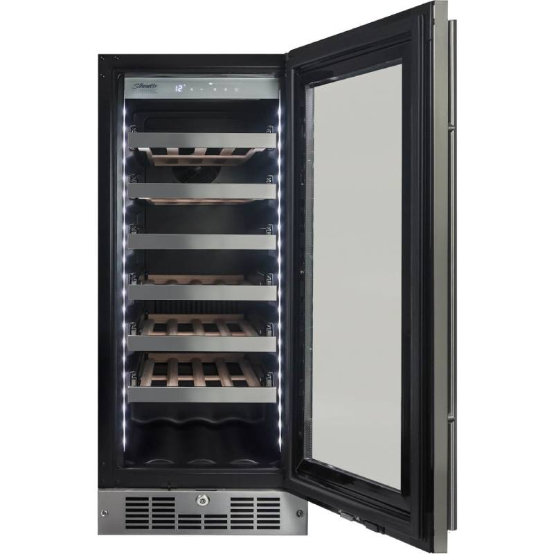 This Danby SPRWC031D1SS Silhouette Tuscany Black/Stainless Steel Wine Cooler is a sleek and slim wine cellar that’s light on width but heavy on style. Tuck your reds or whites away safely behind the tempered glass door and fully extend the smooth shelving to effortlessly examine which bottle you’ll indulge in next. The Proglide shelving system built into this unit features 1.5 stainless steel ball-bearing glides that allow for full shelf extension and quiet convenience. The extensively-tested tracks are equipped with exclusive anti-vibration technology to safely cradle your finest selection of well-stored wine.