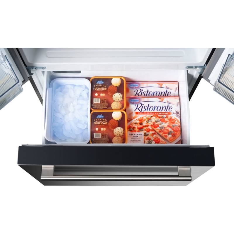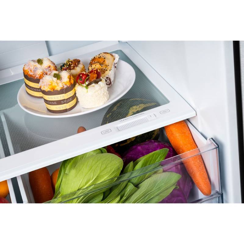 - Half-width crisper drawers are perfect for maintaining fruit and vegetable freshness