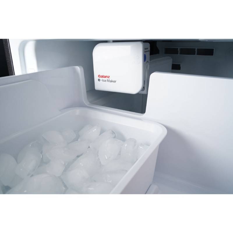 The Galanz 18-cu. ft. 3-door refrigerator is sure to keep all of your family’s favorite foods fresh and organized. Fit everything from 12-inch pizzas to a full 20-lb turkey within your large-capacity freezer drawers. The frost-free design of the freezer compartments prevent frost build-up to protect your frozen foods and keeps the interior neat and clean. Easily adjust the temperature of your unit to suit your needs with electronic controls. This refrigerator features a built-in ice maker that produces up to 3-lbs of cubed ice daily. Full-width shelves, half-width crisper drawers, and built-in door racks make organization simple within your refrigerator. Spill-proof glass shelves, and a fingerprint resistant exterior mean that you’ll spend less time cleaning and more time loving your refrigerator. Bright interior LED lighting, grip handles, and premium glass shelves give this Galanz refrigerator the sleek finishes perfect for any home.