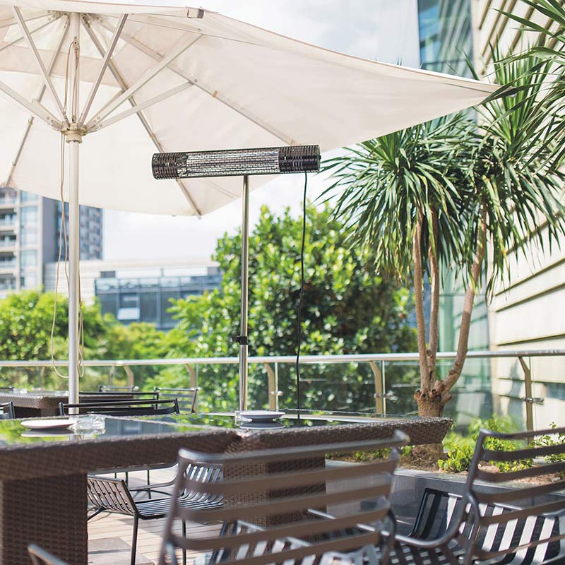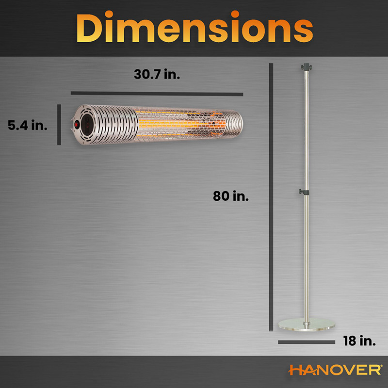 When choosing an outdoor heating system or garage heater, consider Hanover’s line of electric infrared heaters. Hanover’s 30.7-inch wide carbon infrared heat lamp includes a sturdy stainless steel pole stand with a weighted base. Use for your patio, porch, balcony, garage, workshop, and more! The stand is height adjustable from 45″ to 80″ and the heat lamp features two heat settings operated by a handy remote control. Similar to sunshine, infrared heat is a radiant heat that warms a person or an object directly, rather than heating the air in-between. Carbon infrared heat is a soft radiant heat that warms the skin efficiently. Infrared heat can be felt instantly as soon as you turn it on – no waiting for it to warm up. In addition, an outdoor infrared heater saves energy by using less power to create the same amount of heat as traditional gas heaters and there is no smoke or fumes. Extend the use of your outdoor living space with a Hanover infrared stand heater.