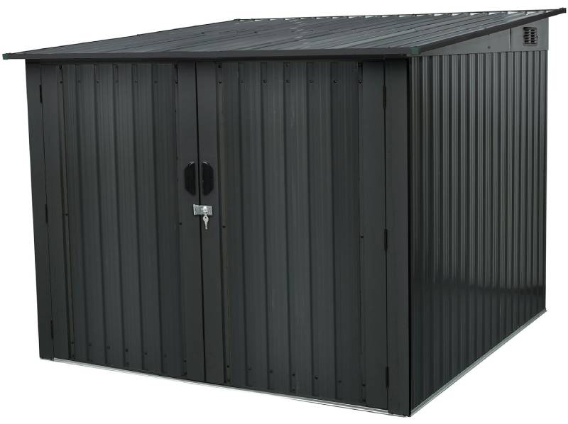 Store and protect up to four adult-size bikes with Hanover’s backyard bicycle storage shed. Constructed from galvanized steel, this strong, durable shed is resistant to rust, corrosion, and UV rays offering your bikes year-round protection from the elements. Included are four adjustable bike tracks store most bicycles up to 78.4 inches long and 43.3 inches tall. The sloped roof allows quick water runoff during rainstorms, keeping your bicycles dry. Front double-doors open fully to allow easy access and are secured with a twist-lock and key. For all your outdoor storage needs, depend on quality products from Hanover.