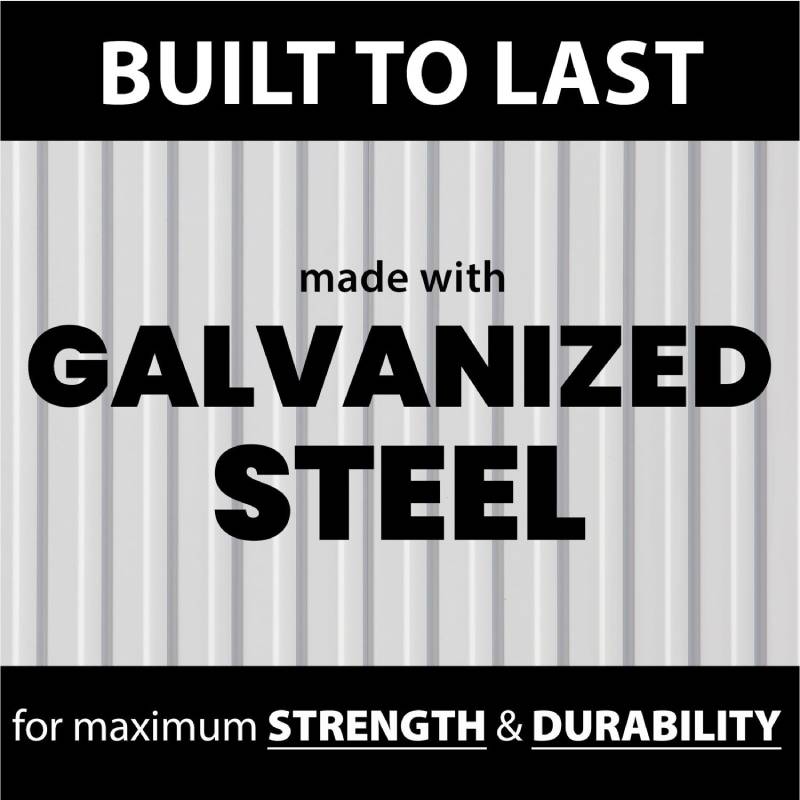 - Durable, galvanized steel construction is resistant to rust, corrosion, fire, and UV rays