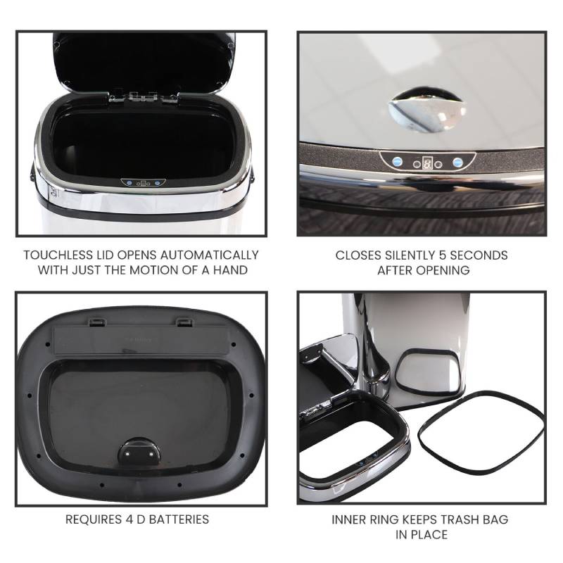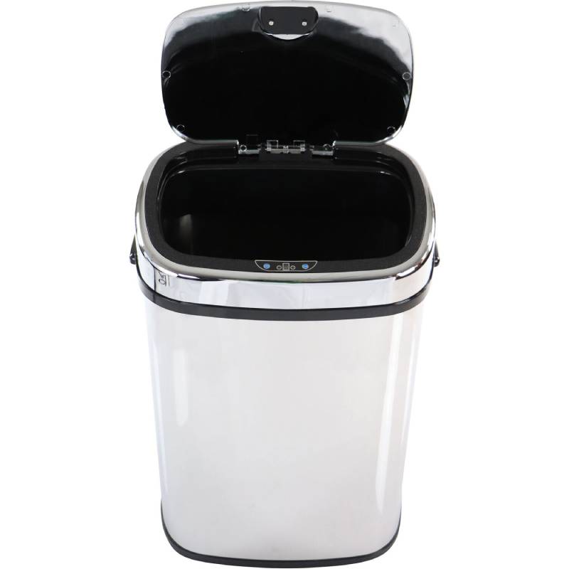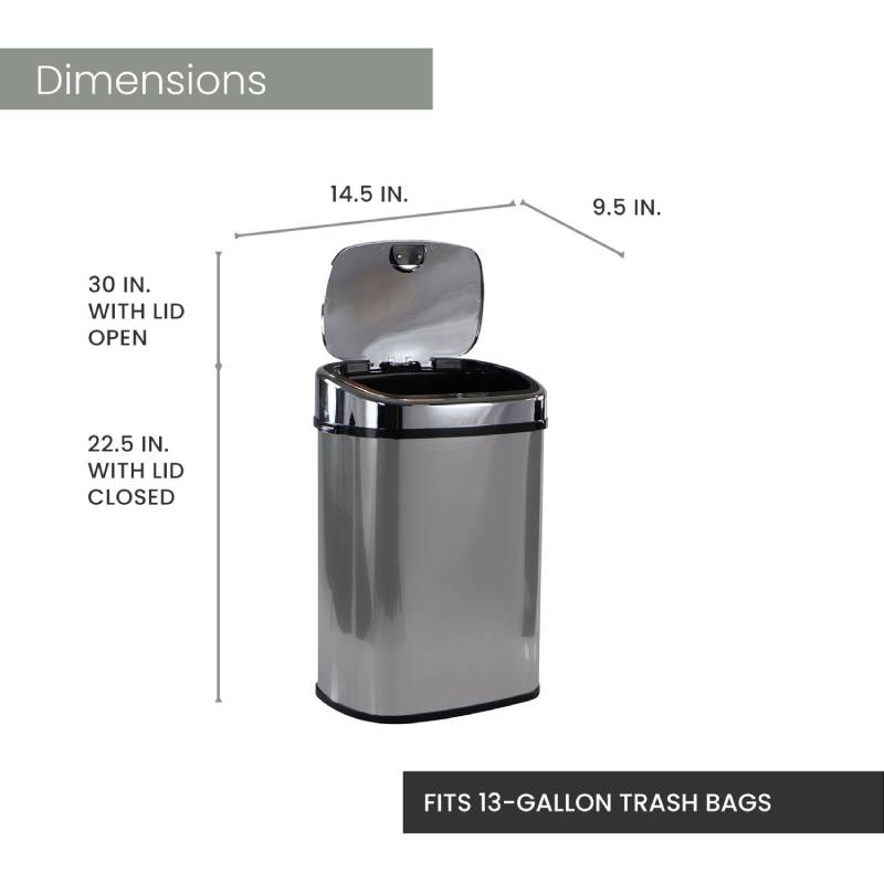 • 50-Liter/13.2-gallon mirrored stainless steel trash can with sensor