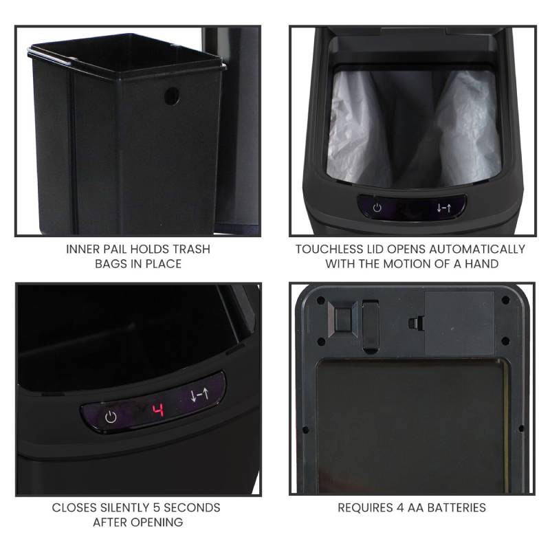 - Touchless lid opens automatically with just a motion of the hand