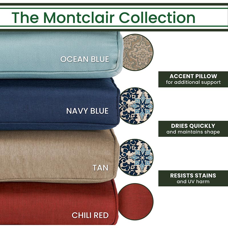 - Fabric color: Ocean Blue, Chili Red, Navy Blue, Tan