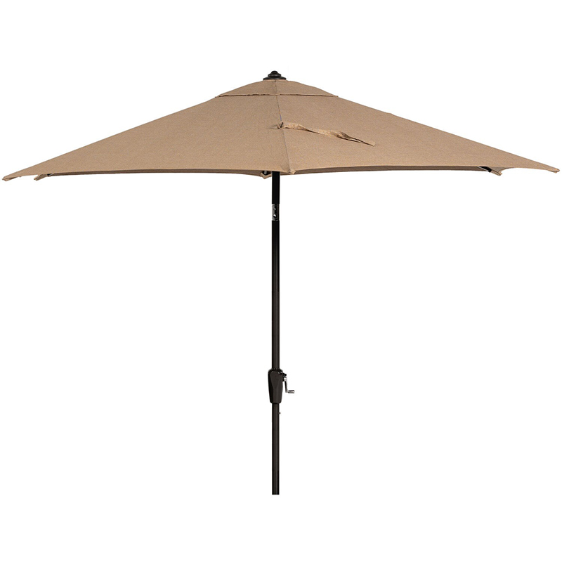 - 9-ft. table umbrella with crank lever for swift opening and pivot feature to adjust shade coverage