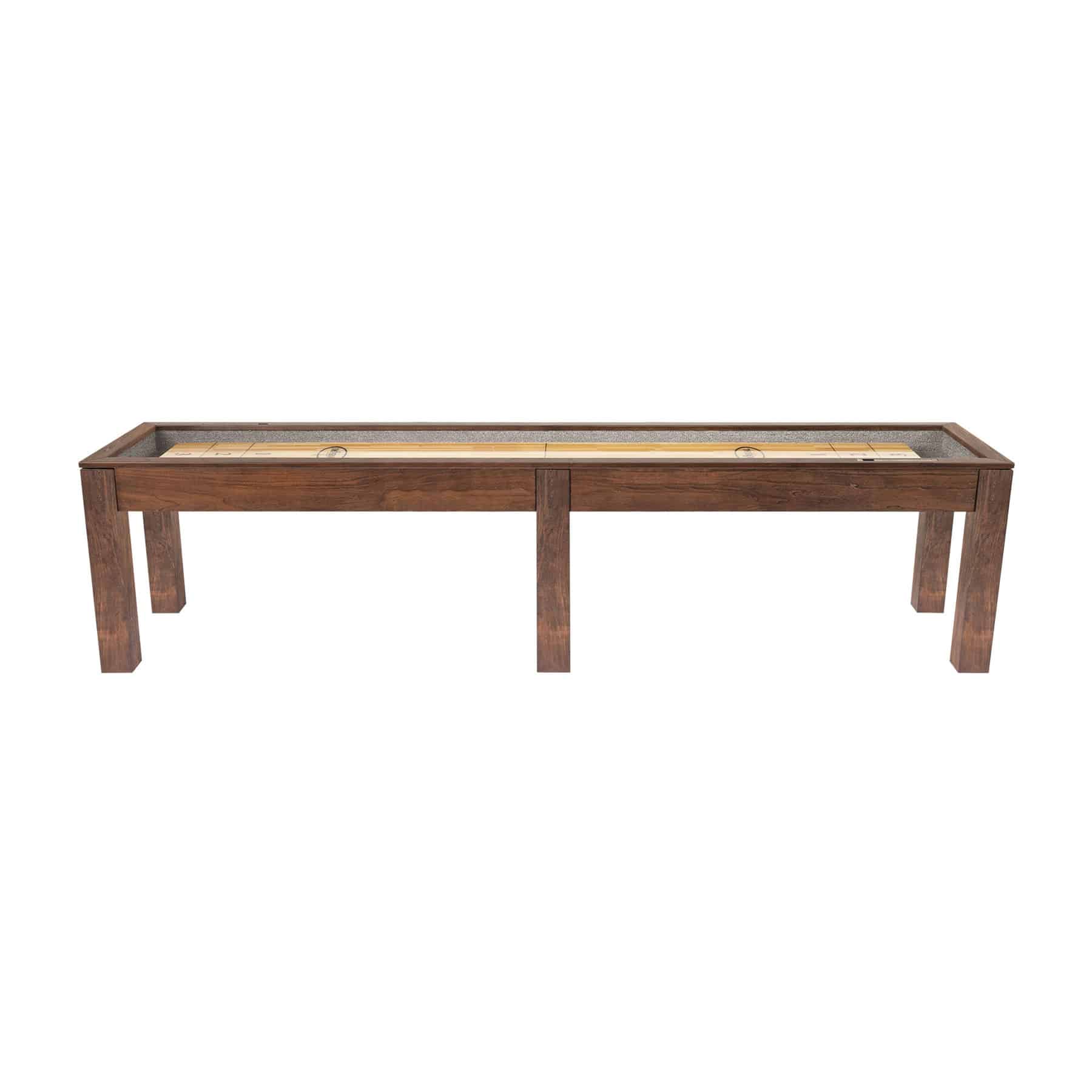 The Imperial Penelope 12 Ft Shuffleboard Table comes in 9 or 12-foot versions and is made of solid Aspen wood in a beautiful Whiskey finish. The solid Aspen wood playfield includes a 1/8″ protective Polymer coating, ensuring and years of fun and enjoyment for the entire family! The Penelope Shuffleboard’s solid wood post legs keep the table perfectly level during play while the sleek playfield provides great puck slide. The table includes 8 pucks (4 red and 4 blue), table brush, can of Speed Wax, and 2 scoring units.