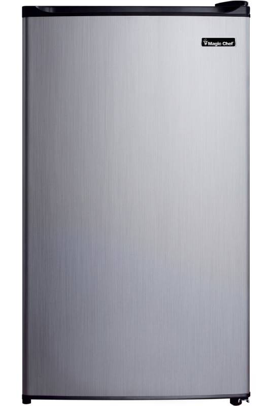Whether you’re college-bound or simply want a little extra cold food storage in your home or office, the Magic Chef MCBR350S2 3.5 CuFt. A Black and Stainless Steel Mini-Fridge with a full-width freezer compartment has the storage options you’re looking for. Its sleek appearance is matched by its well-designed interior which includes a 12-oz. can dispenser to conveniently keep beverages in the door, plus three removable and adjustable glass shelves for personalized configuration.