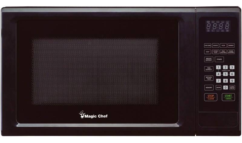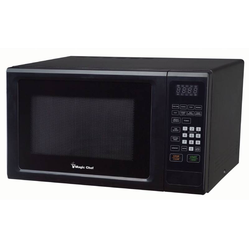 The Magic Chef MCM1110B Black 1.1 CuFt. Countertop Microwave 1000 Watts Prepare a snack or a meal with the Magic Chef 1.1-Cu. ft. countertop microwave oven. Quickly and easily prepare a wide variety of foods with 1000 watts of power, 10 power levels and 8 one-touch cooking programs to help you. Defrost by time or eliminate the guesswork and defrost by weight. In an extra hurry? The express cooking function and memory function streamlines your cooking time.