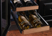 All Perlick under-counter wine shelves are full extension, pulling completely out of the cabinet for easy stocking and retrieving of product. Shelving is black vinyl-dipped to provide additional vibration protection, and shelving glides smoothly in and out of the cabinet on stainless steel ball-bearing glides.