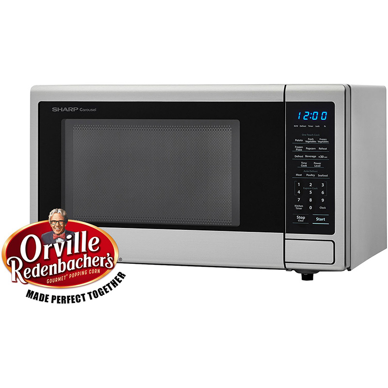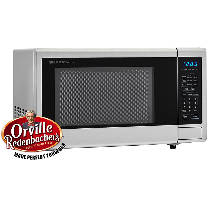 Sharp’s mid-sized 1.1-cu. ft. 1000W countertop microwave oven is more than a great choice for reheating and everyday cooking. It’s also specifically tuned to achieve optimal popping results from the leader in microwave popcorn, Orville Redenbacher’s. Simply touch the Popcorn button to choose the Classic Size (3.3 oz.) or Single Serve Mini Bag (1.16 oz.) of Orville Redenbacher’s Microwave Popcorn. Then sit back and enjoy light and fluffy popcorn. Although, this microwave is not just for popcorn – 1000 watts of power give you rapid reheating and fast cooking of all your favorite foods. One-touch controls, Auto Defrost and the Carousel turntable system make cooking and reheating faster and easier. Plus, the easy-to-clean brushed stainless steel finish with scratch-resistant glass door complements your style. It’s easy to see why home cooks throughout the world trust Sharp Carousel.