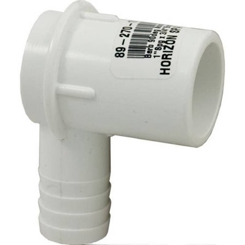 - Barbed 90 degree Adapter 1″Spig x 3/4″ Barb (Spig will glue into a 1″ port).